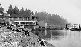 These photos (including scenes of the town's first business district: its port, livery stables, and early transportation such as the Interurban Trolley which operated between Tacoma and Olympia) can usually be viewed before Town Council meetings on the 1st and 3rd Tuesdays of each month, before 6:30 p.m.